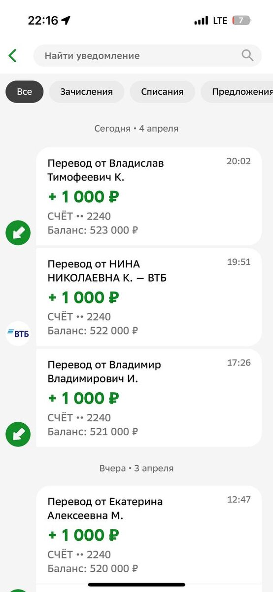 ОТЧЕТ О ПЕРЕВОДАХ ЗА 04.04.2025 г. 💥 Владимир Владимирович И + 1000 р 💥 Нина Николаевна К + 1000 р 💥 Владислав Тимофеевич К + 1000 р СПАСИБО ЗА ПОМОЩЬ И ПОДДЕРЖКУ, ЛУЧШИЕ ЛЮДИ РОССИИ❤️🙏🇷🇺 Война еще не закончилась и наши ребята нуждаются в нашей с Вами помощи. Спасибо Всем, кто не устал и кто рядом 🤝 К сожалению мы не знаем когда закончится СВО, но будем надеяться и молится, что все произойдет скоро! Мужики устали и хотят домой! Но они такие сильные духом , со стальным характером и добрым сердцем 🙏 Пускай Господь Бог поможет и благословит 🙏🙏🙏