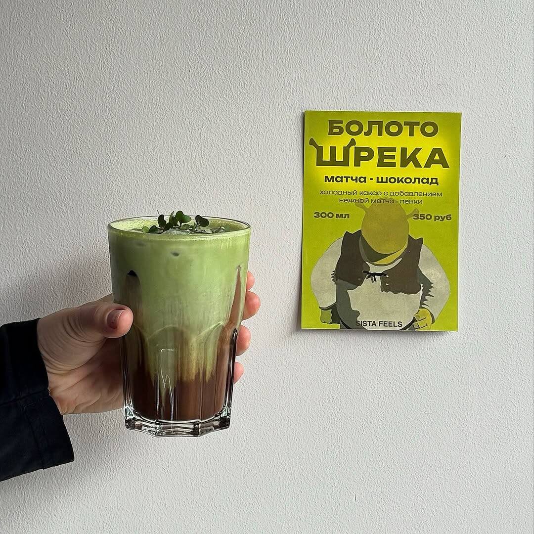 В кофейнях SISTA FEELS можно захватить с собой «Болото Шрека» (холодное какао с матча пенкой) и зависнуть по весенней погодке на прогулке.