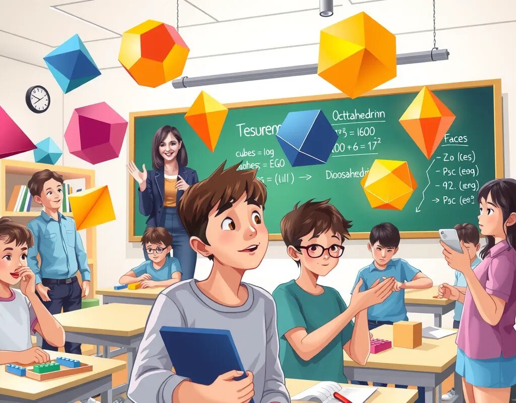 - Играть с друзьями: один загадывает многогранник, а другой должен угадать его по свойствам.
