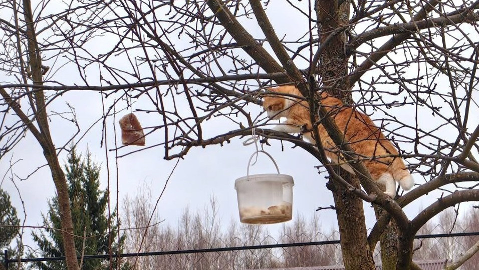 Фотоистория о том, как в тверской деревне Лиса пыталась стащить у синичек сало