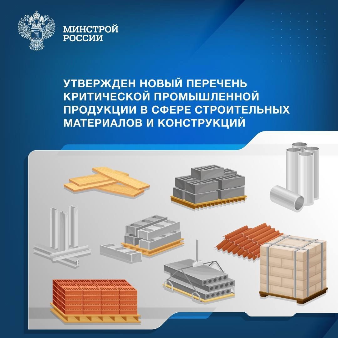 Минстрой России и Минпромторг России утвердили обновленный перечень критической промышленной продукции в сфере строительных материалов и
