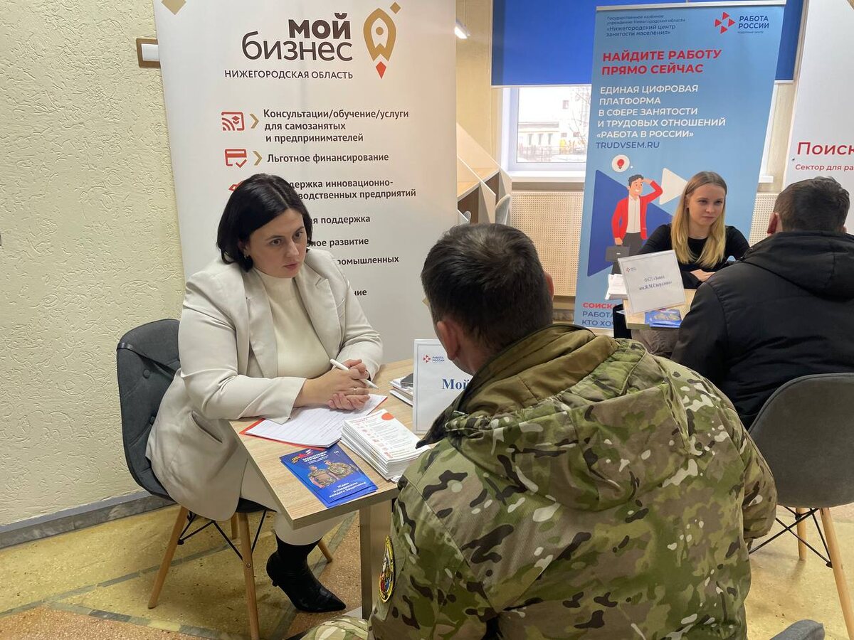⭐ Работаем вместе с региональным филиалом Фонда «Защитники Отечества» Региональный центр «Мой бизнес» принял участие в Ярмарке вакансий для ветеранов СВО и членов их семей в Дзержинске, организованной Фондом. Наши специалисты рассказали участникам о мерах поддержки, которые сегодня доступны предпринимателям, а также провели личные консультации. Ветераны специальной военной операции и члены их семей интересовались выбором системы налогообложения, обучающими программами, финансовыми мерами поддержки, порядком и условиями заключения социального контракта, составлением бизнес-плана. 📌 Фонд «Защитники Отечества» создан по поручению Президента России Владимира Путина. Основной целью фонда является персональное социальное сопровождение ветеранов СВО и семей погибших. Мы - региональный минпром и Центр "Мой бизнес" Нижегородской области при поддержке коллег из Фонда "Защитники Отечества" запускаем проект по поддержке участников СВО и членов их семей. ⚡ Будем помогать ребятам создавать и