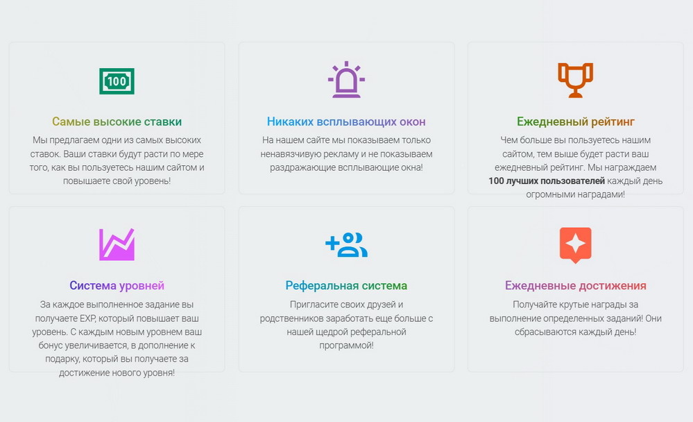 Платформа сочетает классическую схему кранов с элементами геймификации. После регистрации вы попадаете в интерфейс с десятком вариантов заработка. Главное правило — активность повышает ваш уровень и доходность.