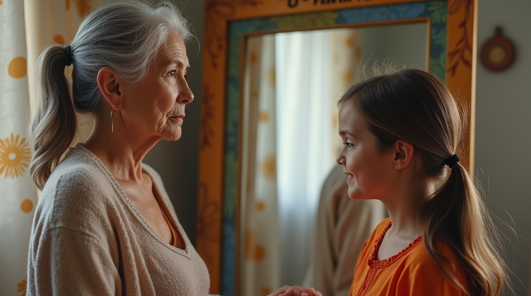 Она увидела седые волосы, морщины, чуть опущенные уголки губ. А потом — в глубине взгляда — себя шестнадцатилетнюю. Ту, которая писала стихи. Которая мечтала. Которая плакала, но не сдавалась.