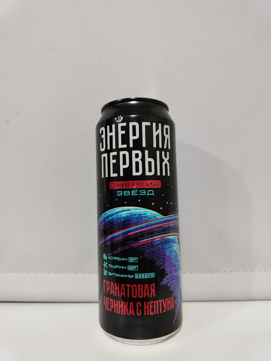 У относительно новой линейки энергетиков вышли новые вкусы. Ориг был самый посредственный, но вот вкусовые по моему субъективному мнению получились очень хорошими. Мне попался сразу самый интересный вкус из 3, здесь всё также мало сахара и не указаны подсластители, в прошлых были насыщенные и яркие вкусы, думаю послужили этому вкусоароматические вещества и препараты. Состав: Кофеин – 240/100 Таурин – 30/100 Сахар – 4,7/100 Подсластители – Отсутствуют Прошлые банки были красочны, но именно эта – восхитительна. На банке изображён Нептун в сине-фиолетовых тонах, а его кольца содержат в себе красный, фиолетовый и синий (а также его оттенки), все эти цвета вкупе создают неоновость, будущность и создают космическую атмосферу. И как по мне он очень сильно отдаёт эстетикой старых и не только, фильмов с неоном, например "Трансеры", "Бегущий по лезвию 2049", "Трон" в какой-то степени. Свежий аромат кисловатого и терпкого граната в связке с прилично сладкой черникой. Здесь же больше ощущается че