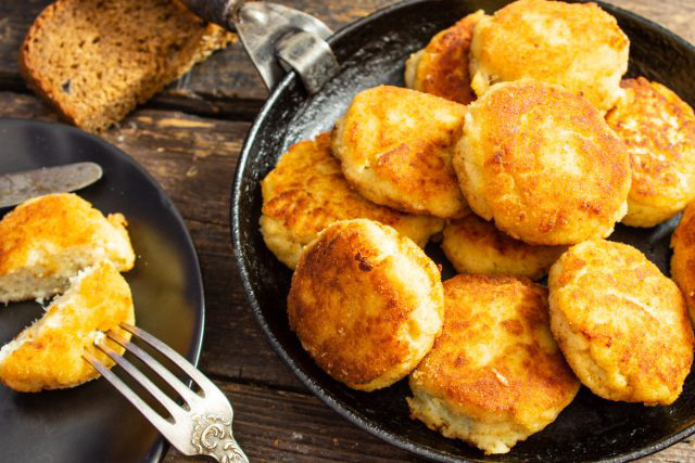 Ингредиенты: 400 г рыбного фарша из белой морской рыбы: трески, минтая или наваги (замороженного или свежеприготовленного), 1 куриное яйцо, 1 небольшая луковица, 100 г вареного картофеля, 15 г сливочного масла, панировочные сухари, соль, растительное масло для жарки без запаха.
