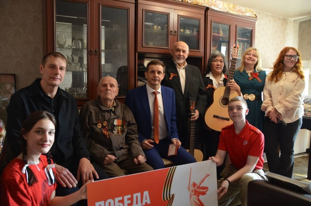 Глава Абакана Алексей Лемин вручил юбилейную медаль труженику тыла Николаю Александровичу Хребтову.