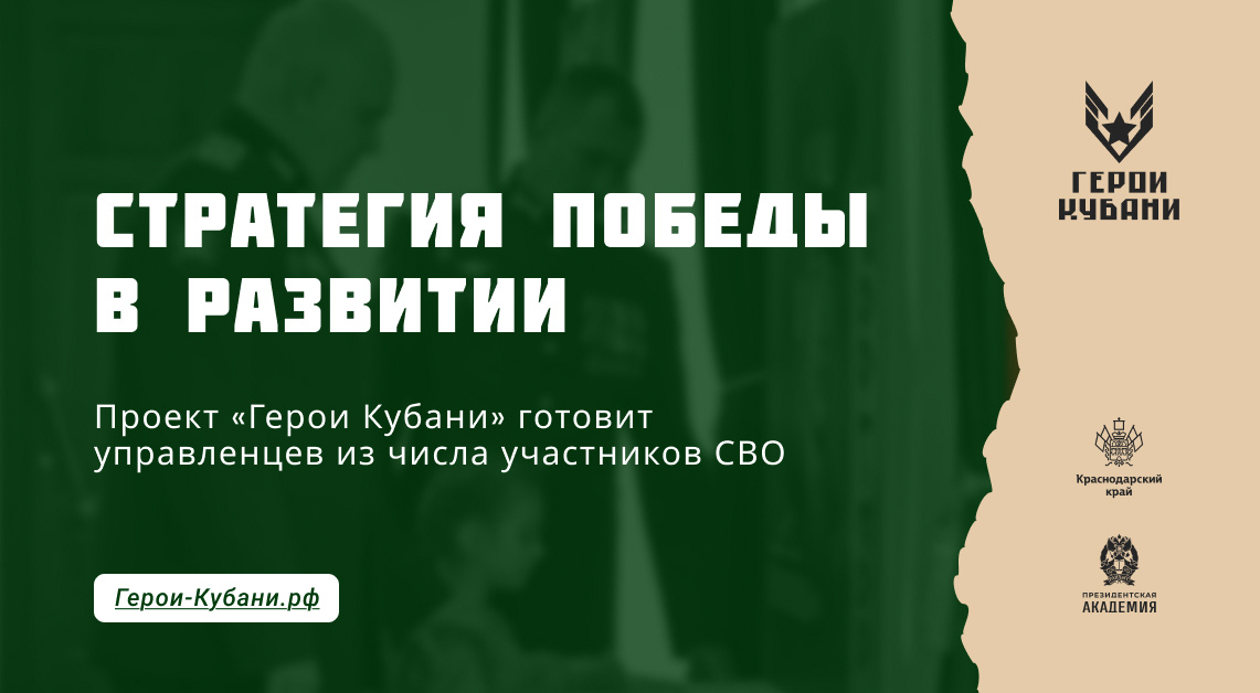 С 28 февраля на территории региона заработал кадровый проект «Герои Кубани». Реализуется он в рамках поручения президента о создании возможностей для адаптации и профессионального развития участников и ветеранов специальной военной операции. Он даёт возможность людям, прошедшим СВО, найти себя в государственной и общественной деятельности, пройти обучение, развить лидерские качества и стать частью команды, работающей на благо Кубани и всей страны.