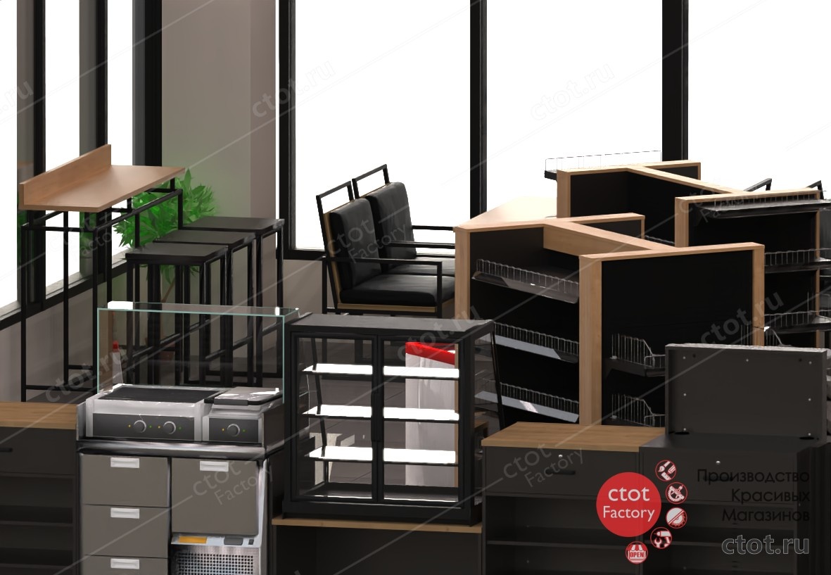 АЗС уже давно перестали быть просто местом заправки автомобилей - теперь это полноценные сервисные центры с магазинами, кафе и зонами отдыха. Именно поэтому фабрика Ctot Factory разработала для сети АЗС в Краснодаре комплексное решение, сочетающее функциональность, красоту и удобство для клиентов и работников. Оборудование выполнено в стильном сочетании чёрного графита и древесных акцентов, что подчёркивает современный и премиальный характер бренда. В проекте использованы: компактные, но вместительные островные конструкции, кассовая зона с удобным расположением полок для импульсных покупок, сигаретный шкаф, оформление для модуля чот-догов, эргономичная посадочная зона с барными столами, стульями и интерьерной перегородкой, которые создают комфортное пространство для отдыха. Благодаря грамотному зонированию пространство АЗС становится не только удобным, но и максимально коммерчески эффективным. Компактные стеллажи увеличивают товарную выкладку, а зона кафе привлекает клиентов, повышая с