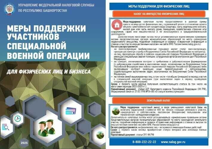 ФНС информирует участников специальной военной операции и членов их семей об имеющихся льготах по имущественным налогам физических лиц и реализованных мерах поддержки для индивидуальных предпринимателей и руководителей юридических лиц, принимающих (принимавших) участие в специальной военной операции.