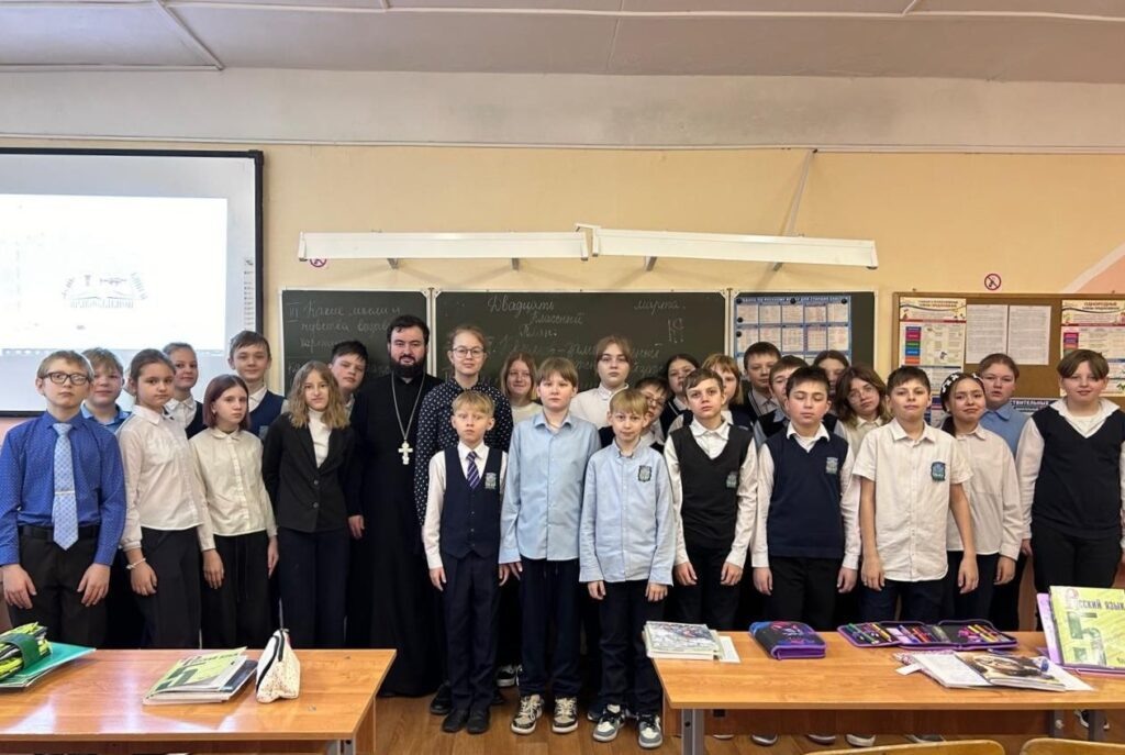 25 марта 2025 года клирик Пантелеимоновского храма г. Дубны иерей Давид Абрамсон провёл с учащимися 5-го класса Запрудненской средней общеобразовательной школе № 1 Талдомского г.о. беседу на тему «День православной книги». Пастырь рассказал о том, как и когда появилась письменность на Руси, о трудах святых равноапостольных Кирилла и Мефодия и их учеников, а также о трудах первопечатника диакона Ивана Фёдорова и первых печатных книгах. Ученики порассуждали о том, как изменилась жизнь с появлением письменности и печати книг. Иерей Давид показал школьникам разницу между кириллицей и глаголицей, познакомил с книгами, написанными на славянском и церковнославянском языках, разобрал написание цифр. Дети пытались прочитать текст из «Слова о полку Игореве» на славянском языке и поняли, что это довольно сложно. Отдельное внимание заслужило знакомство с «Буквицей», её видами и написанием. В конце урока пастырь ответил на вопросы учеников.