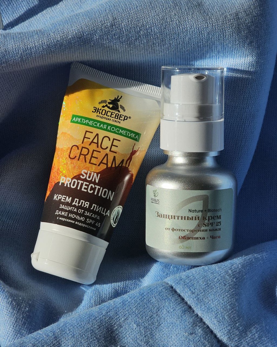 Сейчас тестирую натуральную баночку от Ferbos в составе облепиха, чага и грибной меланин. Лёгкий, хорошо впитывается, не блестит. Аромат нейтральный, дозатор удобный. Приятно, что защита сочетается с ухаживающим составом — кожа не только под прикрытием, но и написана