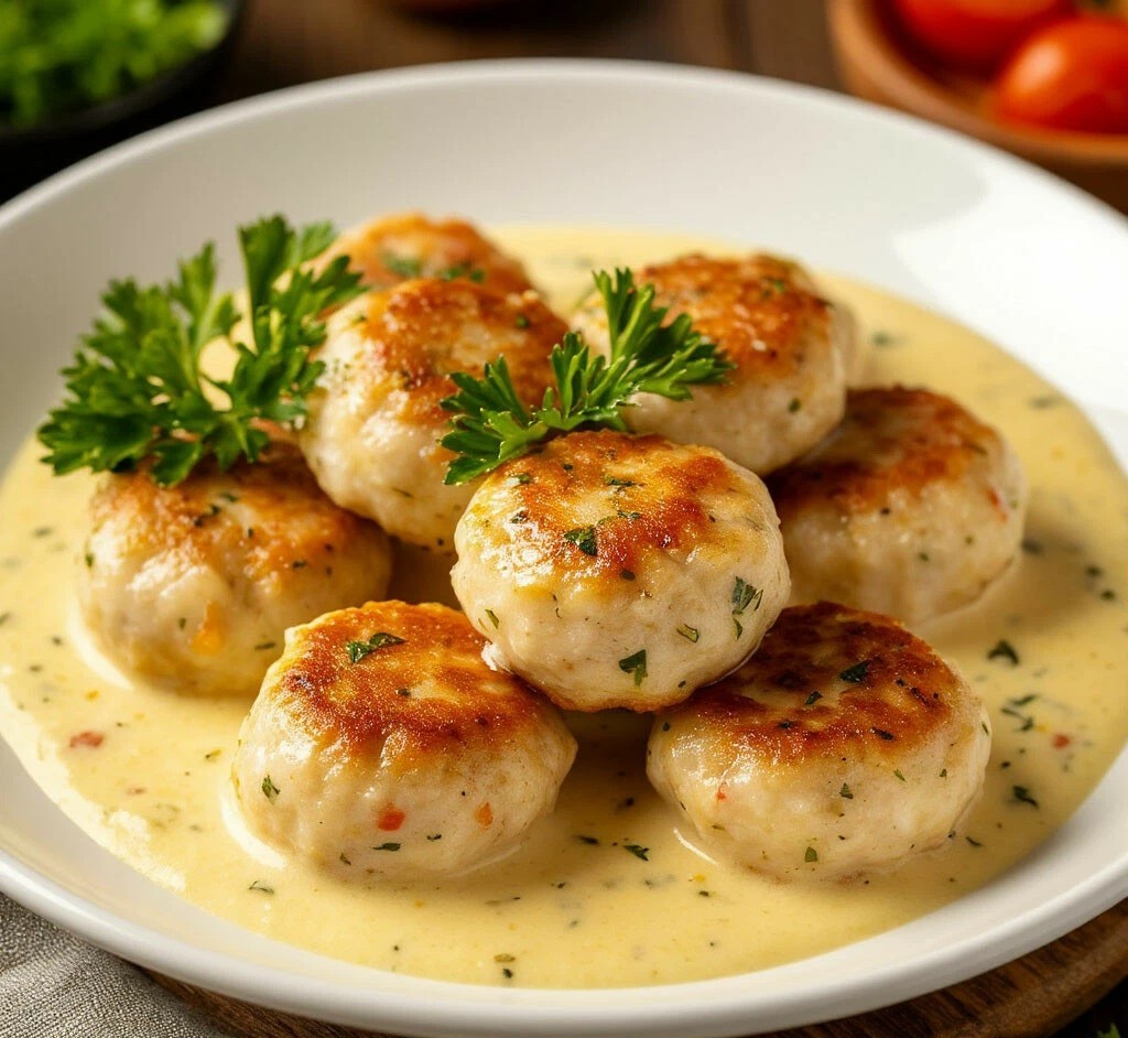 9. Готовые фрикадельки подавайте с соусом бешамель.