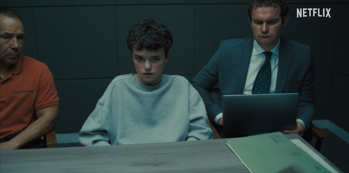 Кульминацией первого эпизода становится демонстрация записи с камеры видеонаблюдения, на которой Джейми запечатлен в момент нанесения смертельного удара ножом Кэти на автостоянке. Шок и ужас охватывают Эдди, но он не может до конца поверить в увиденное. После допроса отец и сын остаются наедине в комнате для допросов. В момент отчаяния Эдди машинально отшатывается от прикосновения Джейми, но затем, осознав ситуацию, обнимает сына.