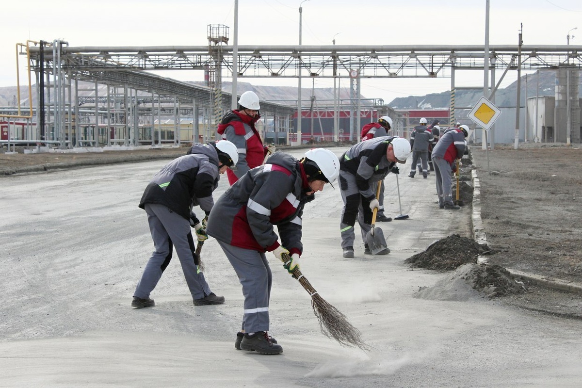 Свежий воздух и бодрящая музыка, разливающаяся над территорией промышленной площадки, создавали праздничное настроение и желание навести порядок.