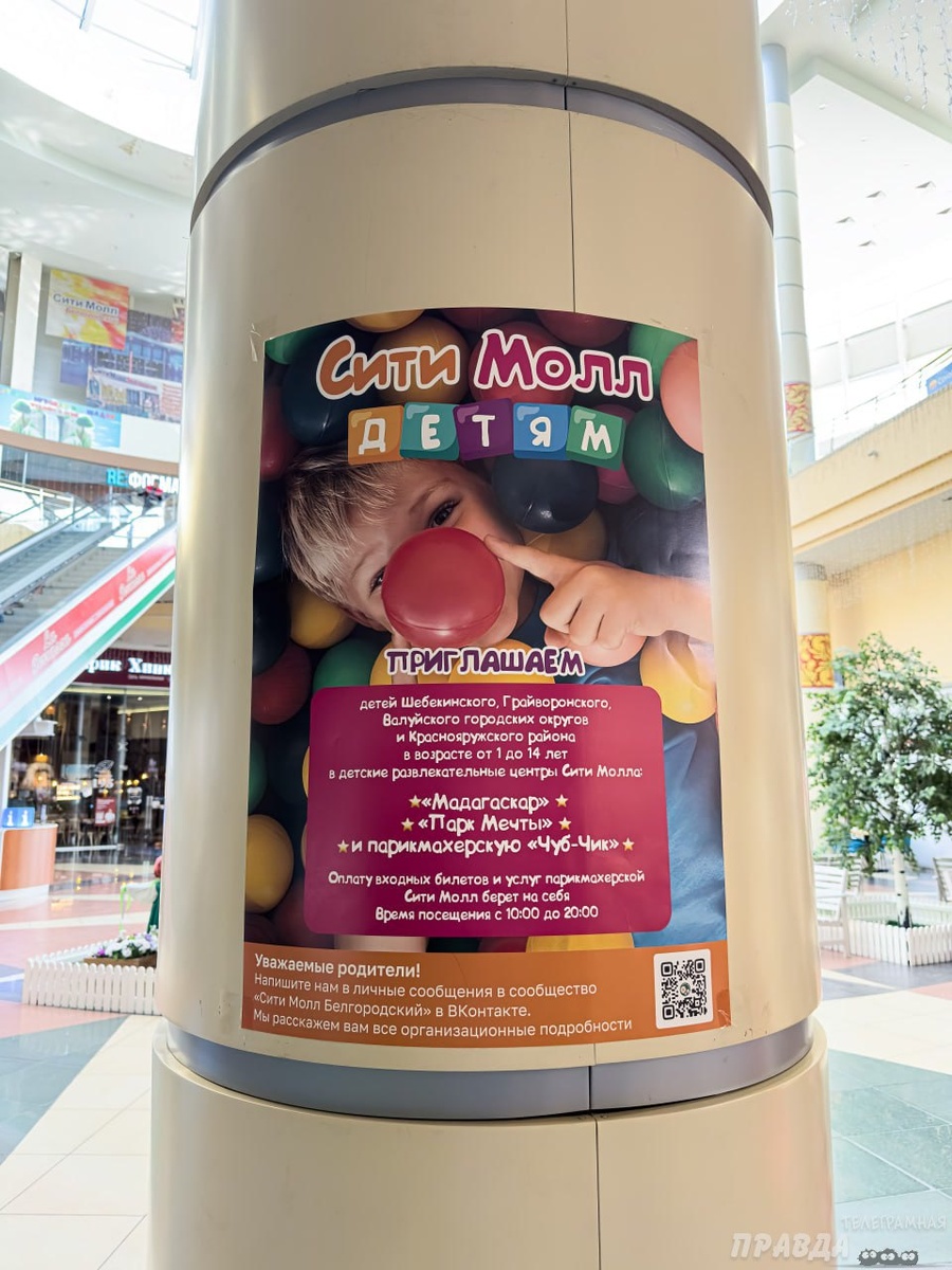 Центральное Черноземье Новости Белгорода: В «Сити Молле» бесплатно приглашают детей приграничья в развлекательные центры «Мадагаскар», «Парк мечты» и парикмахерскую «Чуб-Чик». Торговый центр уже на протяжении почти двух лет принимает детей от 1 до 14 лет из Шебекинского, Грайворонского, Валуйского горокругов, а теперь и из Краснояружского района к себе. В «Сити Молле» подсчитали — они бесплатно приняли за это время 6 740 детишек. Чтобы воспользоваться акцией, просто напишите в личные сообщения ТРК. Уважение «Сити Моллу» за такое дело 💪 ❤️ Подпишись на «Белгород №1» Телеграмная Правда @PROновостиЧерноземья Телеграмная Правда