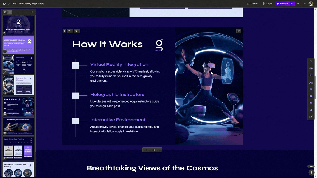 Цель Gamma — провести нас от идеи к ее воплощению со скоростью мысли. В этом месяце нам представляют множество новых возможностей, которые помогут ускорить процесс создания, упростят совместную работу и позволят эффективнее делиться контентом. Итак, что нового: Нужно вести совместную работу с коллегами за пределами Gamma? Теперь мы можем беспрепятственно делиться своим контентом, напрямую экспортируя его в Google Презентации. Создавать контент в Gamma, а затем переносить его куда угодно еще никогда не было так просто. Чтобы экспортировать, откройте меню "..." в своей гамме, нажмите "Экспорт", затем выберите "Экспортировать в Google Презентации" Процесс создания только что вышел на новый уровень: пользователи тарифных планов Gamma Plus и Pro теперь имеют доступ к детальным контурам, сгенерированным искусственным интеллектом. Начиная с этого обновления, Gamma использует интернет-поиск, чтобы обеспечивать дополнительный контекст для наших материалов. Это дает нам надежную базу для генерац