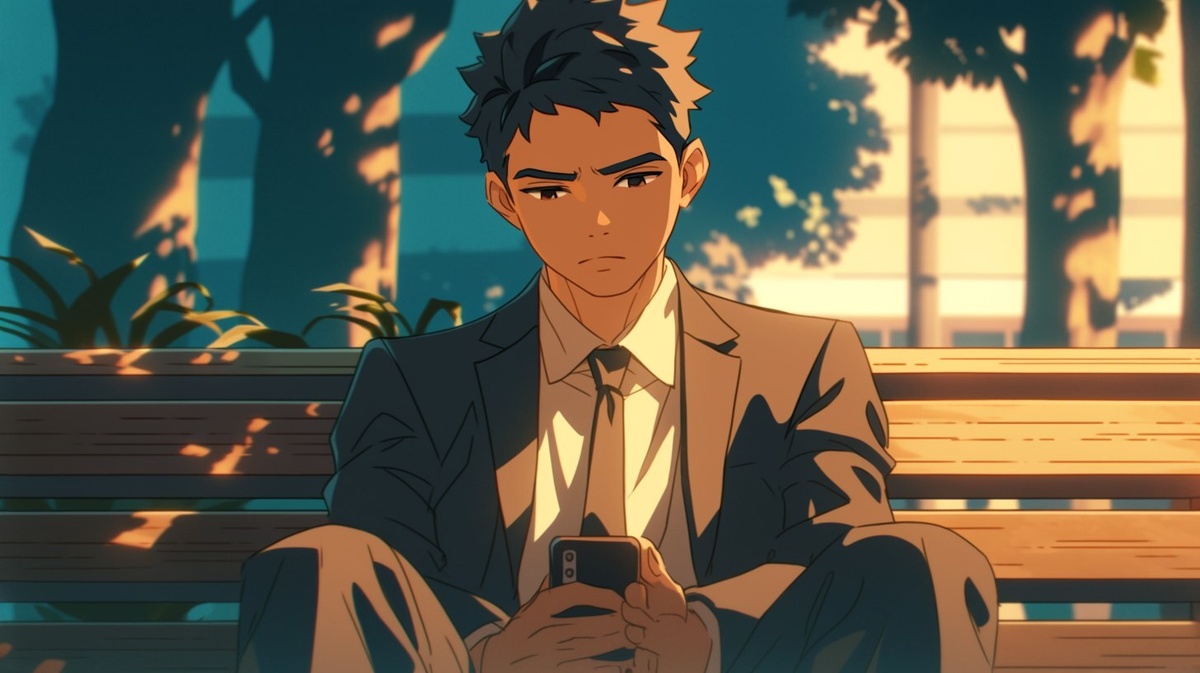 Создано на основе запроса: He sits on a park bench on a quiet evening, eyes down on his smartphone, reading a newly received message. The screen of his phone glows brightly, casting a soft light on his face. His posture is slightly hunched, elbows on knees, focused on the screen. The background is dim park lights. Cinematic animated lighting, realistic shadows, ambient glow, soft night palette - ANIME STYLE --- Автоперевод: Он сидит на скамейке парка тихой вечер, смотрит на свой смартфон, читая недавно полученное сообщение. Неплохо получилось? 🤔 https://dzen.ru/id/65c0c65c86e4f837c27b24d7 #ИИ #AI #нейросеть #midjourney #art