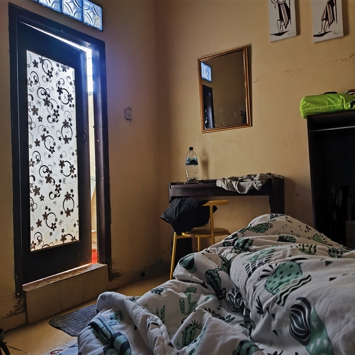 Стук в дверь около 8 утра прервал мой сладкий сон. Подавив недовольство, я поднялся и открыл дверь. За ней стоял Арес с завтраком в руках, и от моей печали об отнятом сне не осталось и следа. Чудесно! Во время бронирования я не заметил такую опцию, так что был приятно удивлён — как раз голоден как зверь. В завтрак входила порция плова, яичная лепешка с зеленью и чипсы (крупук) — в Индонезии их едят как хлеб.
