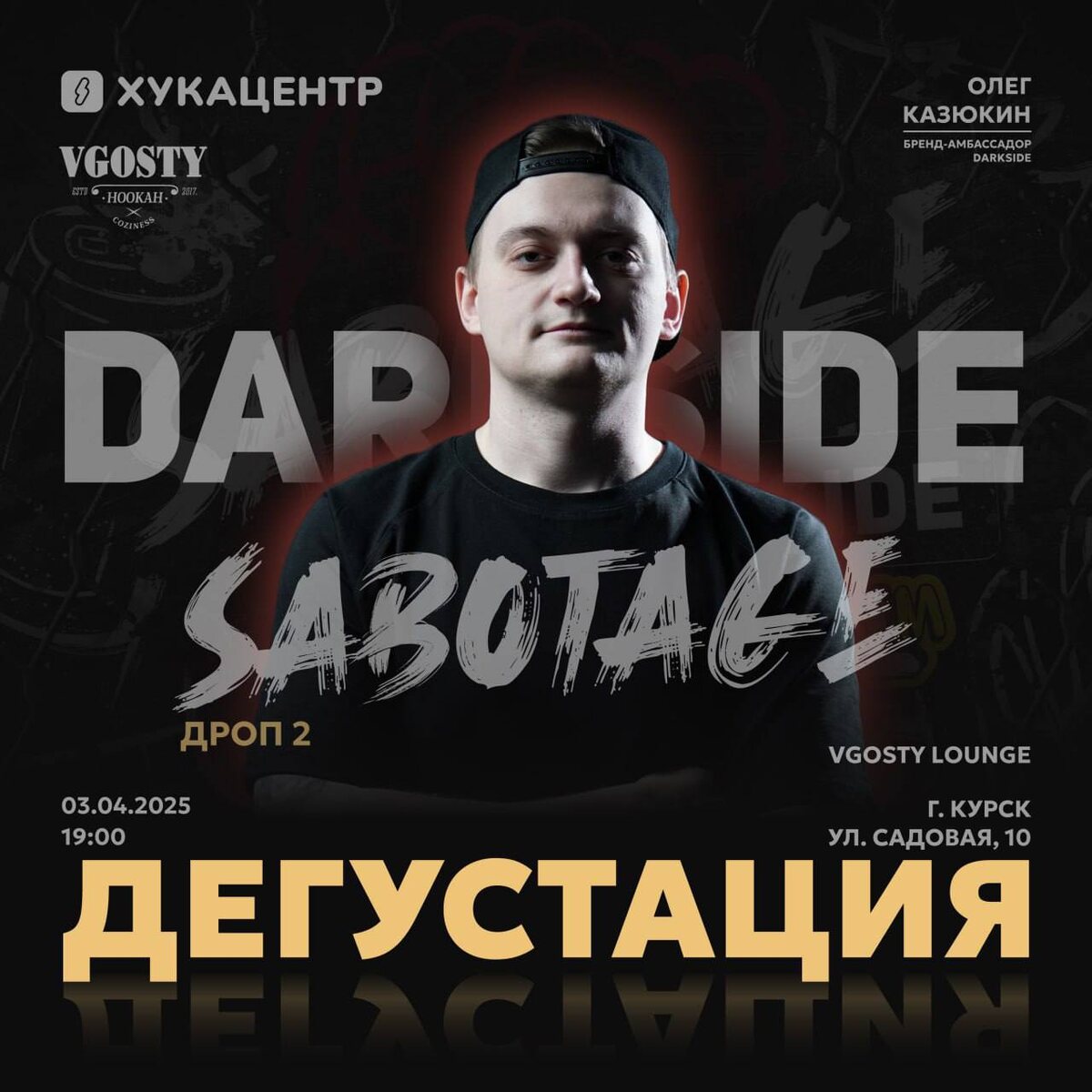 КУРСК! ДЕГУСТАЦИЯ 2 дропа SABOTAGE by DARKSIDE! 03.04.25 HOOKAHCENTER.PRO совместно с DARKSIDE организует дегустацию в кальянной VGOSTY LOUNGE Готовьтесь к новому — вас ждет новый дроп SABOTAGE by DARKSIDE 💛BITTERSWEET #тоник #лимон 💛BLONDIE #брауни 💛BLOODRAIN #землянка #джем 💛PIKI #ананас #кокос #арбуз 💛SHISHKI #сосна 💛YAGODZA #кислыеягоды Мероприятие бесплатное, для прохода нужно пройти регистрацию в форме ниже Проведет дегустацию бренд-амбассадор DARKSIDE Олег Казюкин. 🗓Четверг, 03.04.25 🕛19:00 ⚡️Кальянная VGOSTY LOUNGE (ул. Садовая, 10, Курск) Регистрация 👈🏻 HOOKAHCENTER.PRO – оптовая продажа никотиносодержащей продукции