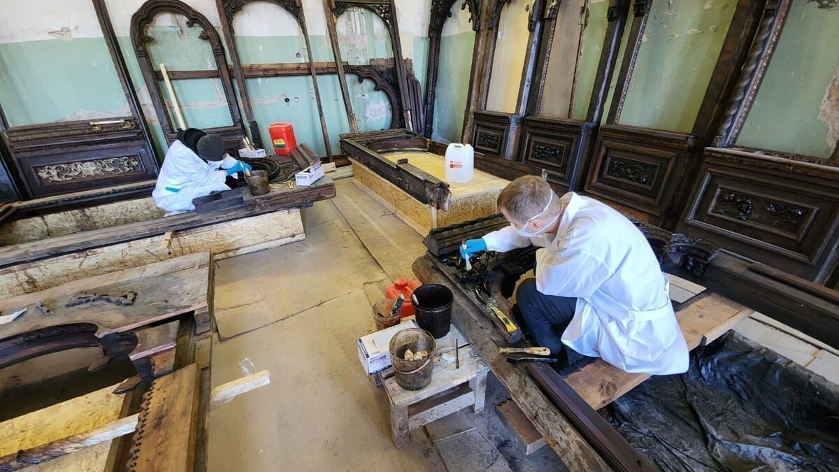 «Идёт расчистка иконостаса от загрязнений, старого лакокрасочного покрытия, дефектовка и сортировка деталей», – написал он.