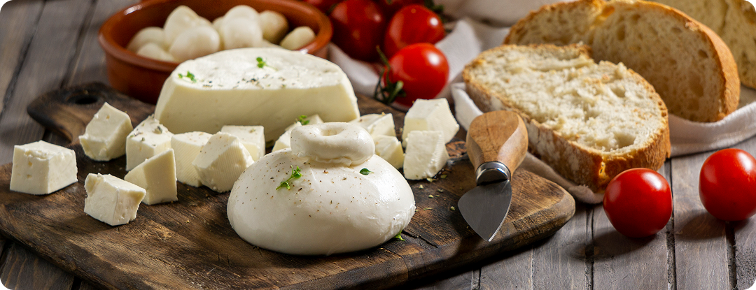 Моцарелла, буррата и страчателла — известные итальянские сыры, которые часто можно увидеть в меню ресторанов и в продаже в магазинах. Хотя каждый из этих сыров имеет свои особенности во вкусе и текстуре, у них есть общая черта — они связаны с моцареллой. Моцарелла служит основой для создания страчателлы в виде нитей, а также используется при производстве бурраты, в которой скрыта страчателла. В результате все эти сыры являются разновидностями одного и того же продукта. Давайте рассмотрим каждый вид сыра более подробно! Моцарелла — популярный итальянский сыр, который известен во всём мире. Вкус моцареллы мягкий и нежный, с ненавязчивыми молочными оттенками. Умеренное содержание соли и отсутствие резкого запаха делают этот сыр подходящим для самых разных блюд. Консистенция моцареллы — одна из её характерных черт. Упругая, гладкая и немного эластичная структура позволяет сыру хорошо держать форму и в то же время легко плавиться при нагревании. Именно поэтому моцареллу часто добавляют в пи