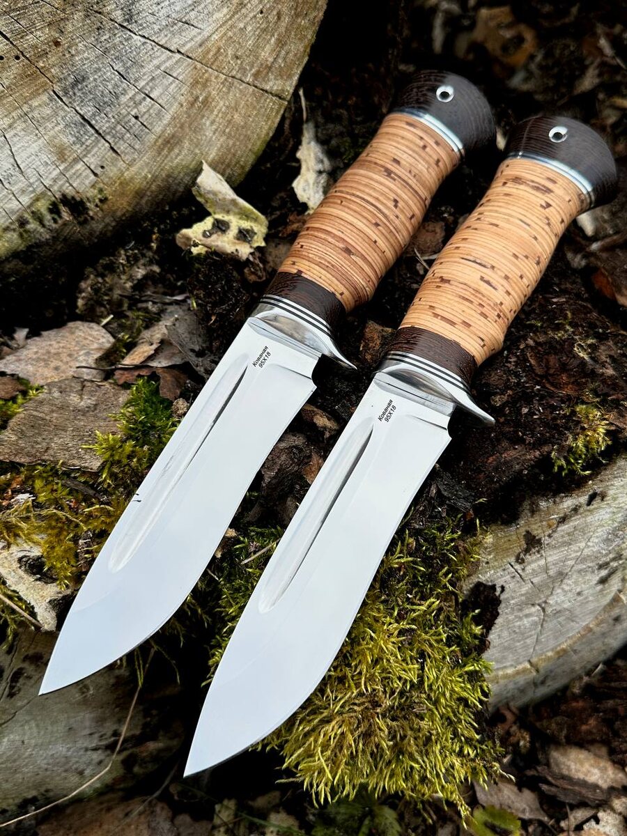 Готов охотничий нож «Варан» из отечественной нержавеющей стали 95х18 с фрезерованным долом (ребро жесткости). Спуски идут от середины клинка, что делает нож более прочным при боковых нагрузках. Рукоять теплая из бересты, не скользит в руке и не боится воды. Нож заточен в бритву. Твердость клинка (HRC): 58 Цена за нож: 8.840 рублей, со скидкой: 7.072 рубля. В комплекте идут ножны из натуральной кожи. Можем сделать формованные ножны +8000 рублей. Для заказа писать на @Nazarklinokbot или по тел +79101343831 WhatsApp/Viber