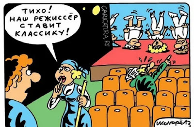 Отвлекусь, как всегда, на воспоминания, уж извините. Как-то раз. будучи еще в Греции, мы с мужем ходили на представление «Снежное шоу Славы» Полунина в Афинах, в одном из небольших театров в центре города — «PALLAS», билеты стоили от 50 до 100 евро на первые ряды партера (мы купили на 15 ряд партера за 60 евро, то есть - 120 евро на двоих). Были билеты и дешевле, но нас предупредили, что лучше всего сидеть в первых рядах партера, чтобы самим поучаствовать в шоу. И мы не пожалели...
