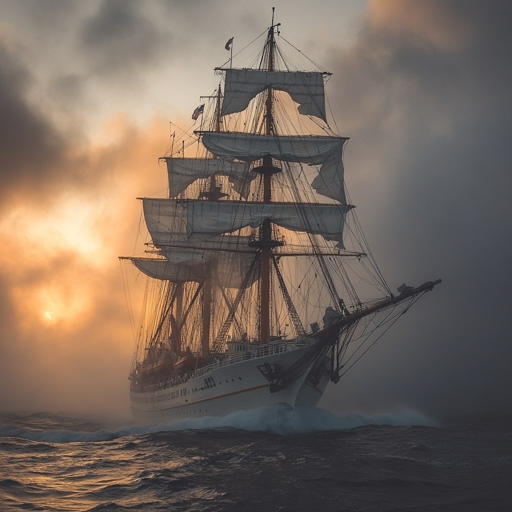 Создано на основе запроса: the united states coast guard barque eagle on the high seas in the early morning light.
