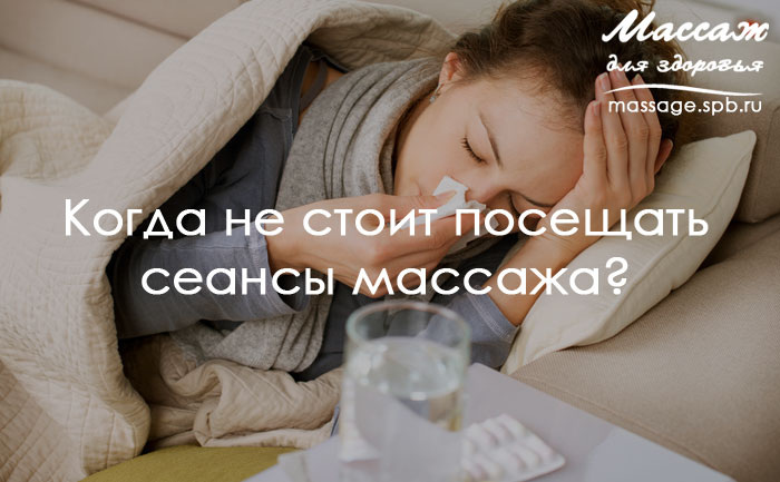 Сегодня мы расскажем вам, в каких случаях стоит воздержаться от похода к массажисту. В первую очередь, советуем вам остаться дома в следующих случаях: В таких случаях самое главное – взять проблему под контроль и обратиться к специалисту. Если у вас есть хроническое заболевание, обязательно сообщите об этом массажисту. Для применения многих техник массажа при наличии тех или иных хронических заболеваний массажист должен обладать специальными навыками.