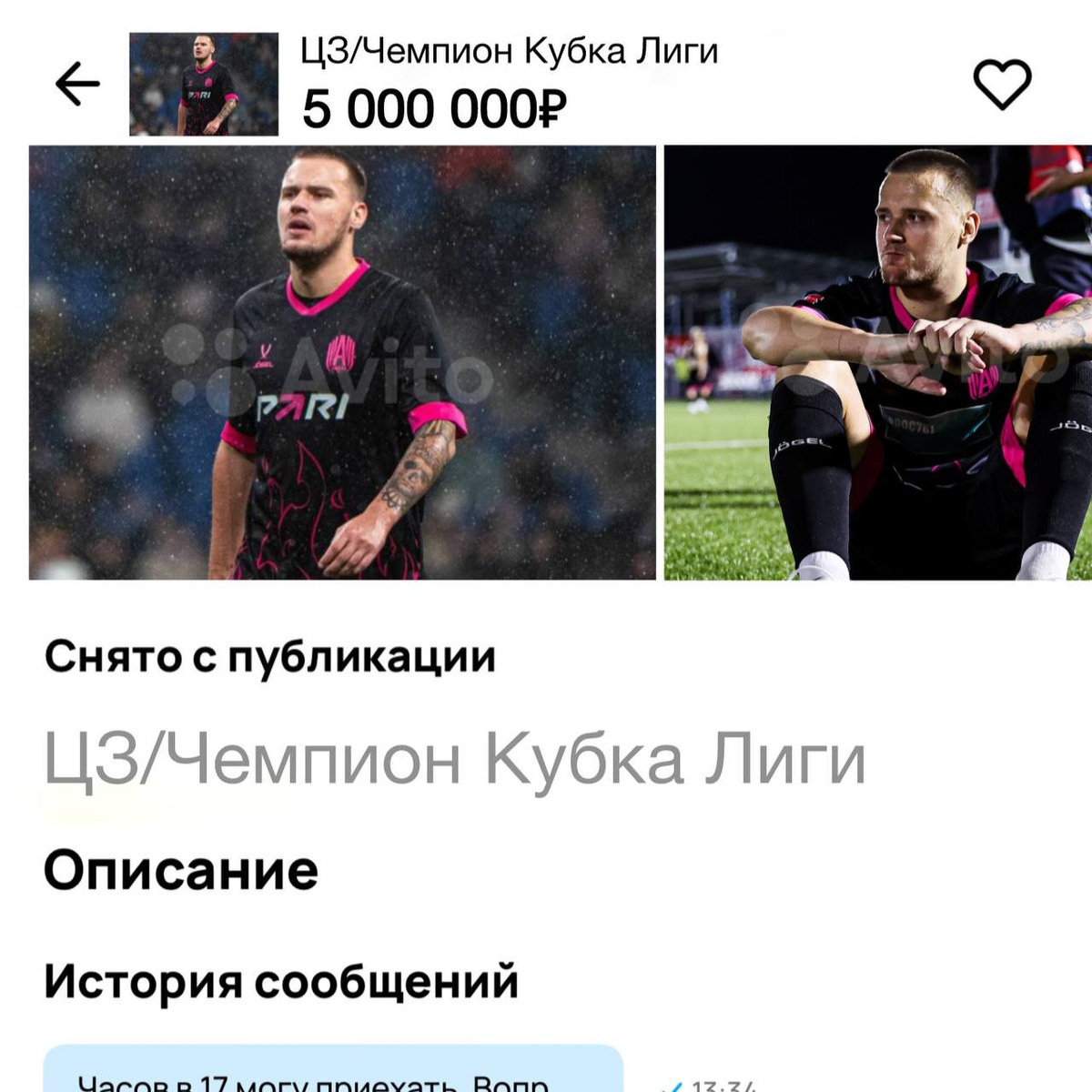 28 марта клуб опубликовал обновленный пост на «Авито», на котором объявление снято с публикации.