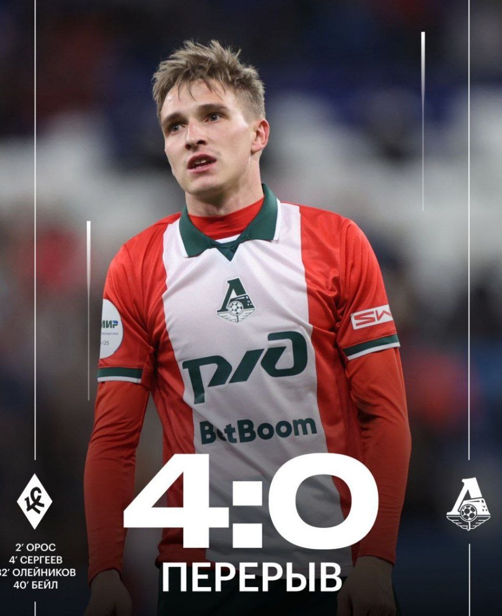 😱 Сенсационные 45 минут на «Солидарность Арене» «Крылья Советов» громят «Локомотив» со счётом 4:0 после первого тайма матча 22-го тура РПЛ. Подопечные Игоря Осинькина забили в стартовом отрезке (на второй минуте отличился Доминик Ороз, на 4-й — Иван Сергеев) и под занавес 45-минутки (забили Иван Олейников на 35-й минуте и Гленн Бейл на 41-й минуте). @russian_rt_sport