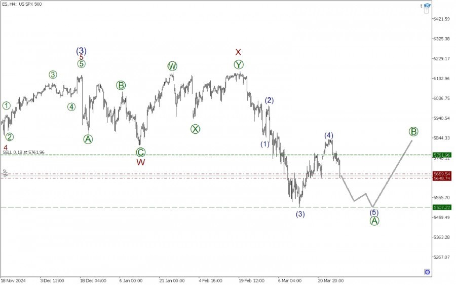 https://basechop.ru/wordpress/?p=36104 На последнем участке графика мы можем наблюдать формирование сложной коррекции (4), она похожа на двойную тройку W-X-Y. Действующая волна W завершена в форме стандартного зигзага [A]-[B]-[C]. Волна-связка X завершена в форме двойного зигзага [W]-[X]-[Y]. Предполагается, что сейчас формируется медвежья волна Y, которая, вероятнее всего, примет форму стандартного зигзага [A]-[B]-[C], как показано на графике. Приближается завершение первой импульсной подволны [A], после которой возможна небольшая коррекция [B]. После того как будет построена восходящая коррекция [B], цена вновь продолжит падение в заключительной импульсной волне [C]. Скорее всего, медведи повторно поведут рынок к минимуму 5507.22, на указанной отметке величина волны [4] составит 50% по расширению Фибоначчи от импульса [3]. В текущей ситуации можно рассматривать открытие коротких позиций. Торговые рекомендации: Sell 5817.82, takeprofit 5507.22. Материал предоставлен компанией…