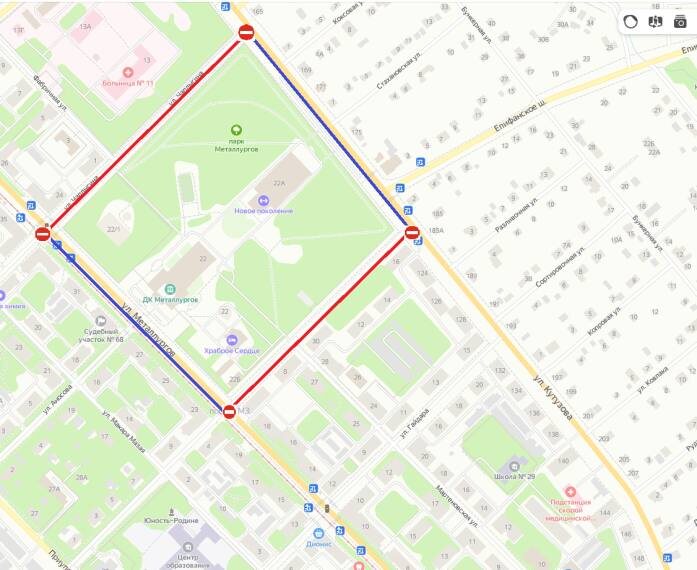 С 05:00 до 09:00 30 марта будет ограничено движение всех видов транспортных средств, кроме городского общественного транспорта, от ул. Кутузова до ул. Металлургов по ул. Чаплыгина и Металлургов.