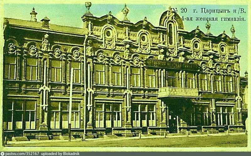 На этой старинной фотографии запечатлено здание 4-й женской гимназии в Царицыне, построенное в начале XX века. В дореволюционной России женские гимназии были важными образовательными учреждениями, где девушки получали не только общее образование, но и учились музыке, рукоделию, иностранным языкам.