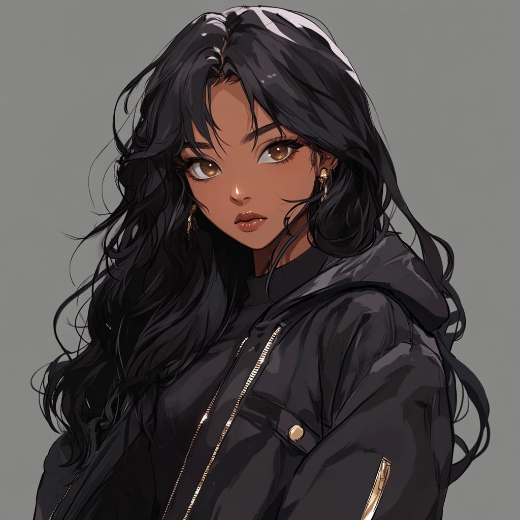 Создано на основе запроса: A anime black girl with long wavy black hair with and hazel eyes. She’s wearing a black jacket with a graphic design --- Автоперевод: Аниме -черная девушка с длинными волнистыми черными волосами с карими глазами. Неплохо вышло? 🤔 https://dzen.ru/id/65c0c65c86e4f837c27b24d7 #ИИ #AI #нейросеть #midjourney #art