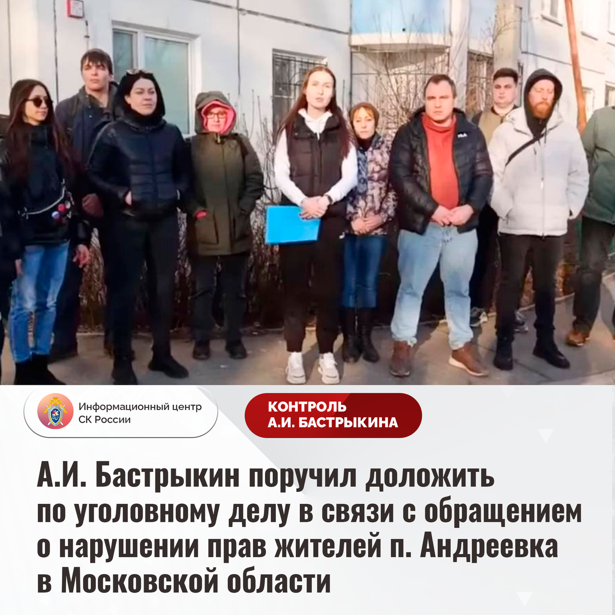 А.И. Бастрыкин поручил доложить по уголовному делу в связи с обращением о нарушении прав жителей п. Андреевка в Московской области
