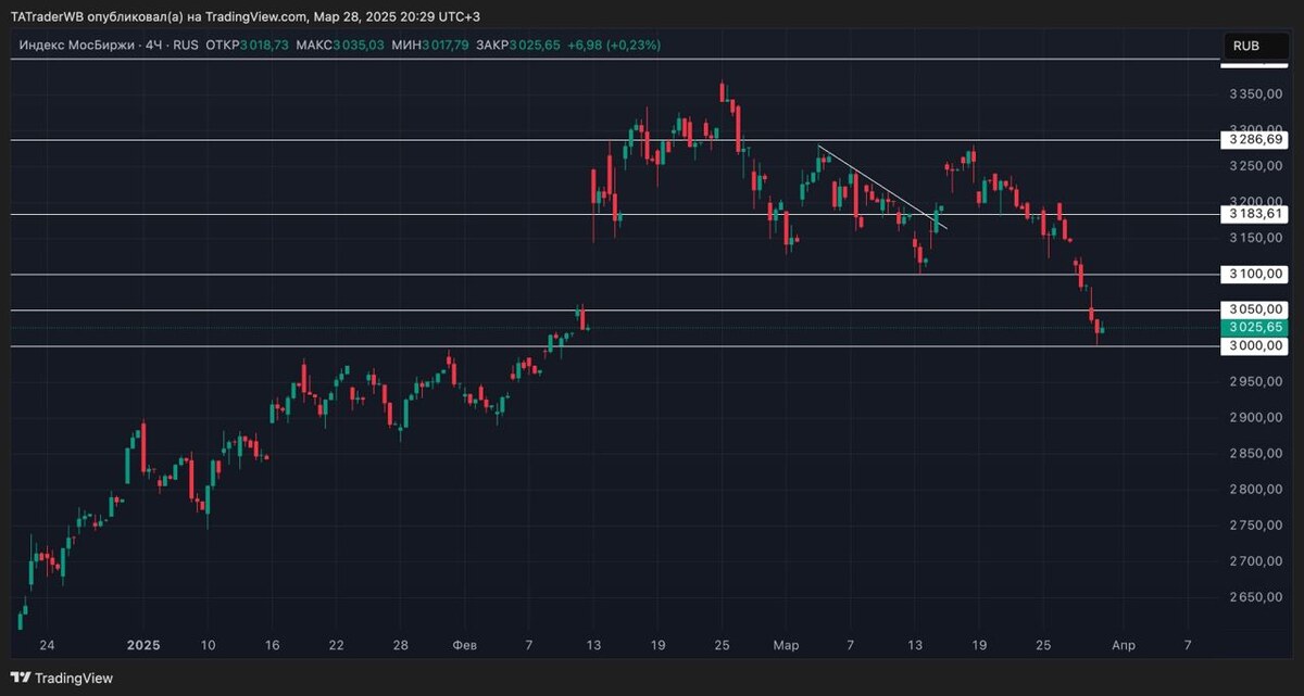 ПЯТНИЦА - ЗАКРЫТИЕ? Что дальше будет и как все получается? 🔽 Сегодня очередной день без новостей, когда индекс слили. Закрытие получается под 3050, слабо шортовой свечой, ибо все таки есть небольшой откуп от 3000. Однако уже на вечерней торговой сессии индекс вновь начали тянуть к 3000, что является слабостью. Отсюда следует, что ВНОВЬ лонговать от 3000 будет не ВЕРНО! Так как это будет НЕ первое касания уровня поддержки, следовательно, если ММВБ придет к 3000, есть вероятность того, что он пробьет вниз данный уровень. Как минимум от него лонговать бы не стал, благо сегодня это сделал и закрыл хороший профит. 💯 Смотря на общую картинку, то как индекс взлетел на новостях и в какой перекупленности он находился во время взлета, в примерно такой же перепроданности он сейчас и находится. Поэтому это в любом случае будет мешать шортить рынок сейчас. Да и в целом в среду индекс был 3200, в пятницу уже 3000… Вот и получается, что каким красивым бы шортовое закрытие не было, шортить в понед