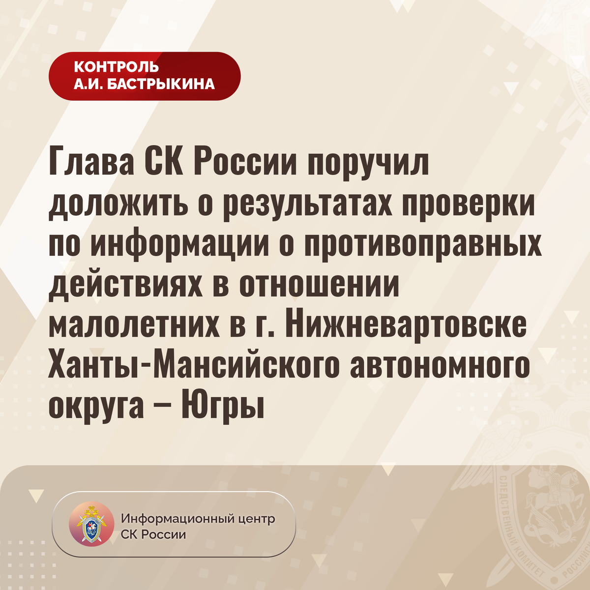 #СледственныйКомитет #СКРоссии #СКР #ИЦСКР #ИнформационныйЦентр #АлександрБастрыкин #ПредседательСКР #КонтрольПредседателяСКР #КомментарийКонтроль #ХМАО