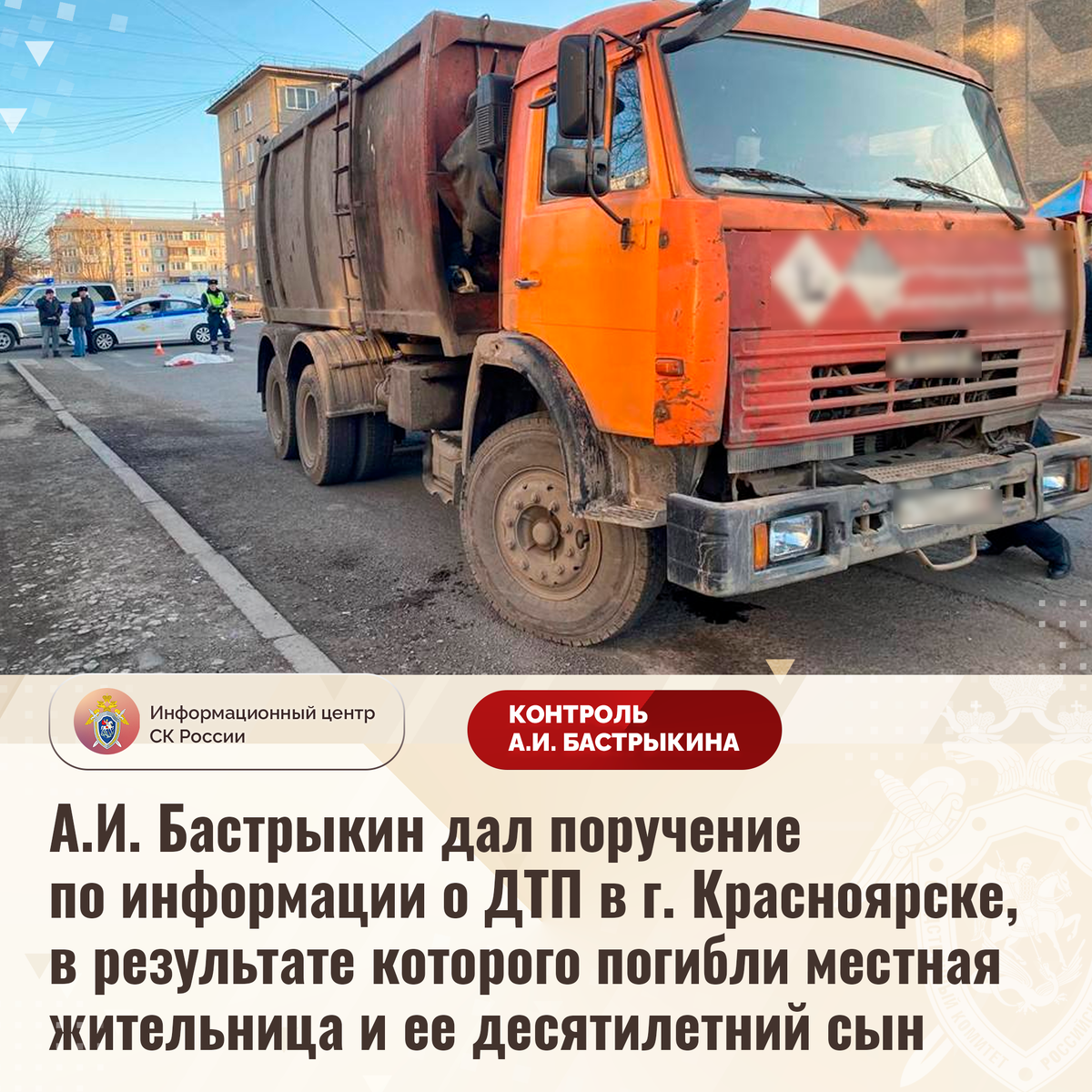 Внимание Председателя СК России А.И. Бастрыкина обращено на публикацию в социальной сети о дорожно-транспортном происшествии в городе Красноярске, в результате которого погибли 34-летняя местная жительница и ее десятилетний сын. 27 марта текущего года водитель мусоровоза сбил женщину и мальчика, переходивших дорогу по нерегулируемому пешеходному переходу. Малолетний скончался на месте происшествия, его мать госпитализирована в медицинское учреждение, где вскоре также констатирована ее смерть.