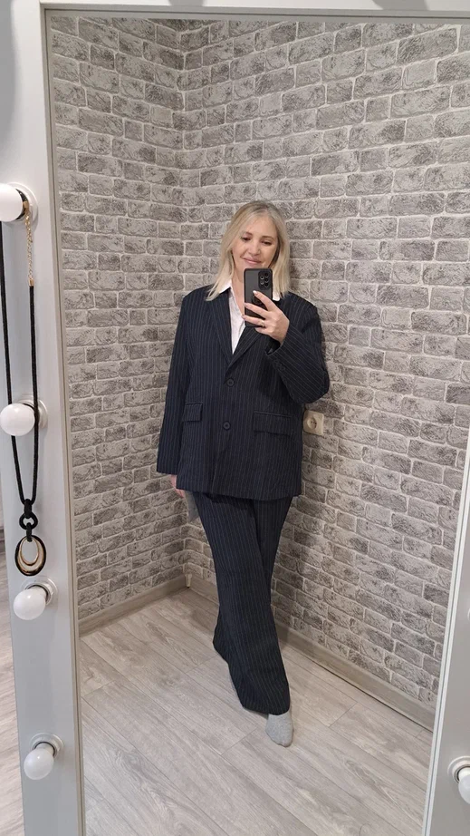 Замеры на L, обращайте внимание на талию и бёдра, так как пиджак не приталенный, подойдет до 50 размера. У брюк сзади на талии есть резинка