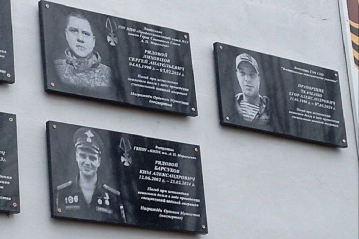 Сегодня в Камышинском индустриально-педагогическом колледже им. Героя Советского Союза А.П. Маресьева состоялось открытие мемориальных досок выпускникам учебного заведения, погибшим в ходе специальной военной операции. Как сообщили ИА «Высота 102» в администрации городского округа Волгоградской области, в учебном заведении увековечили память камышанина – прапорщика Егора Ткаченко, а также уроженцев Камышинского района рядовых Сергея Лиховцова и Кима Барсукова. В церемонии приняли участие родственники погибших воинов, представители общественных организаций города, учащиеся и преподаватели колледжа. Собравшиеся почтили память героев минутой молчания и возложили цветы к памятным доскам. Справка. Контрактник Ким Барсуков служил в разведроте и сложил голову на поле боя 24 февраля 2024 года. 33-летний Сергей Лиховцев, уроженец Петров Вала, до мобилизации работал в РЖД, погиб 5 февраля 2024 года. Егора Ткаченко не стало в декабре 2024 года. Фото администрации Камышина