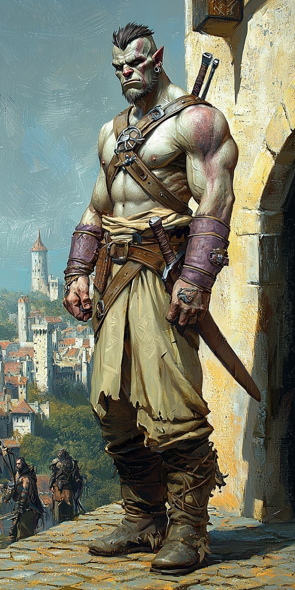 Создано на основе запроса: High fantasy character, male half-orc fighter, full body portrait, dynamic pose, realistic face, realistic