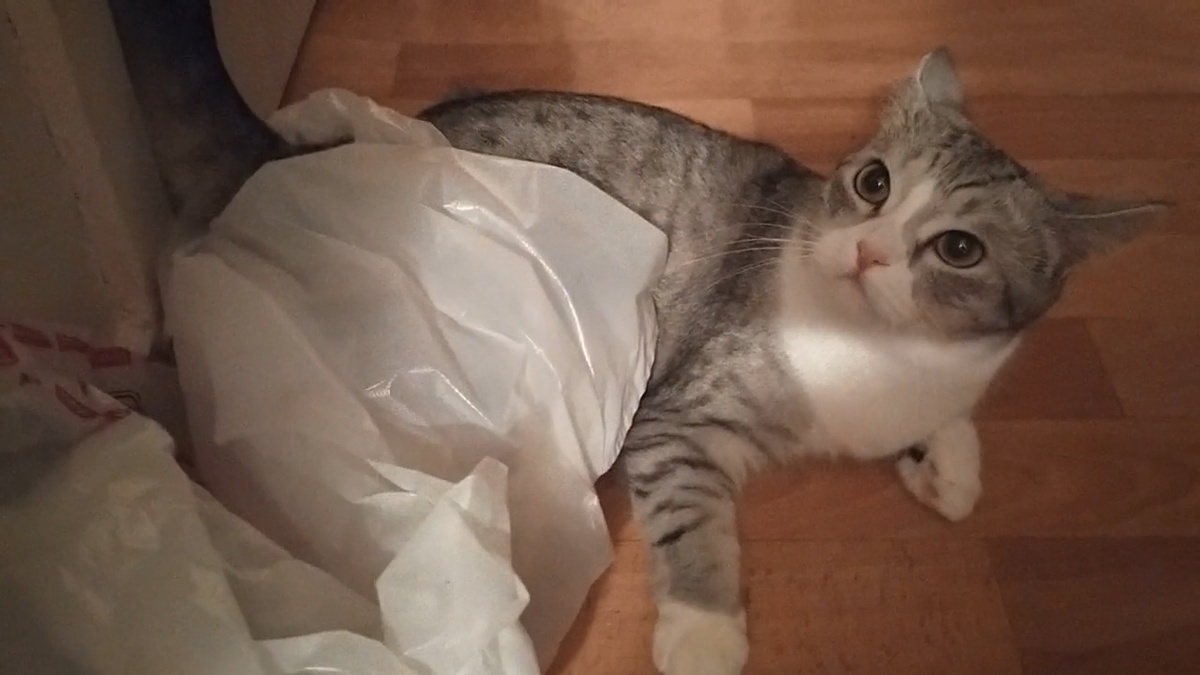 Как Тигруня охотилась на большой белый пакет мы с Белчяшиком увидели, удивились и восхтились. Но про тот факт, что этот пакет кошка отбила у здоровенного старого, сломанного таза, в который тот зябко кутался, ползя на помойку, мы с Белкой не знали и всю эпическую битву пропустили. Ссылка на видео в ОК: https://ok.ru/cherbeloid