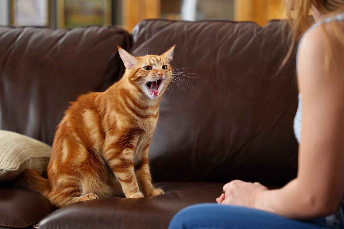 Как звучит: Громкое и настойчивое "мяуууу", которое может повторяться несколько раз.