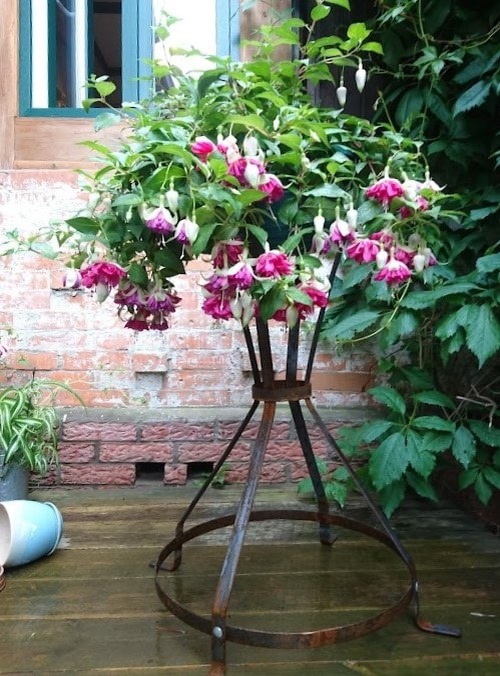 Максим тут показал этажерочку для сада "Бабушка Сюзи"👆См. предыдущий пост. И возник закономерный вопрос - почему бабушка?)) Это давняя история. У нас есть подставки под горшки из полосы, называются Сюзи. В честь английского дизайнера, работающего в таком стиле - изделия из железных полос. А вот такая большая (уже без талии, пардон!) Сюзи... Ну Бабушка, чтож))) А на фото просто Сюзи. Подставка для больших цветочных горшков. Тут 20 литров горшочек с фуксией сорта Миерленхоф.