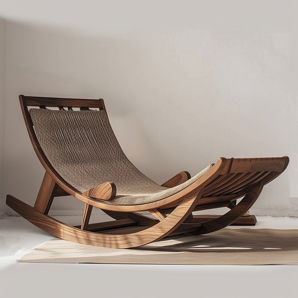 Создано на основе запроса: a designed wooden lounge chair inspired by swiss traditionnal sled