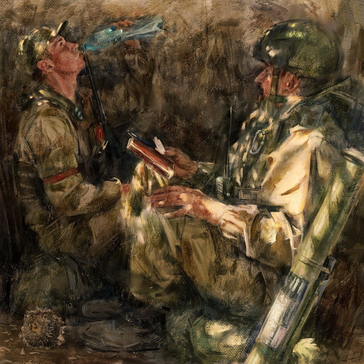 Вырос на войне. Его работы. А вот он сам. Любимый писатель - Шолохов. Несколько раз перечитал всё его собрание сочинений. И вот что говорит этот парень в интервью. А теперь я вам безо всяких сомнений напомню, что на телеканале «Спас» Корчевников-Голованов-Смолин-Кот натурально хором требуют приравнять социализм и коммунизм к сатанизму. Прямым текстом. Против кого они воюют? Да вот против этого донецкого пацана, художника, сына ополченца.