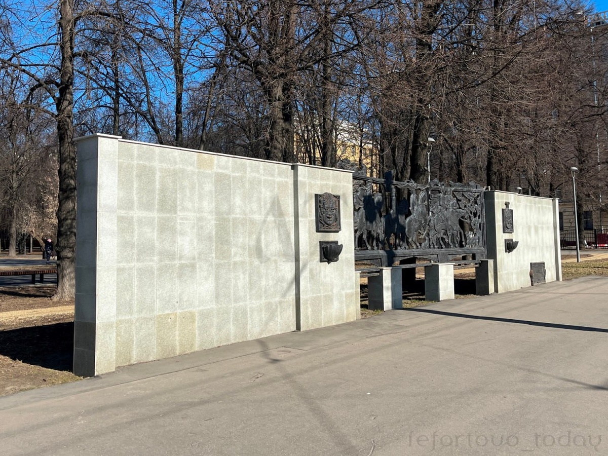 Со стороны Красноказарменной улице рядом со входом в Краснокурсантский сквер установлена Кавалькада, изображающая отряд всадников во главе с Петром I переезжающих через Яузу. На кавалькаде также отображен Борис Шереметьев, Федор Ромодановский, Александр Меньшиков и Федор Головин.