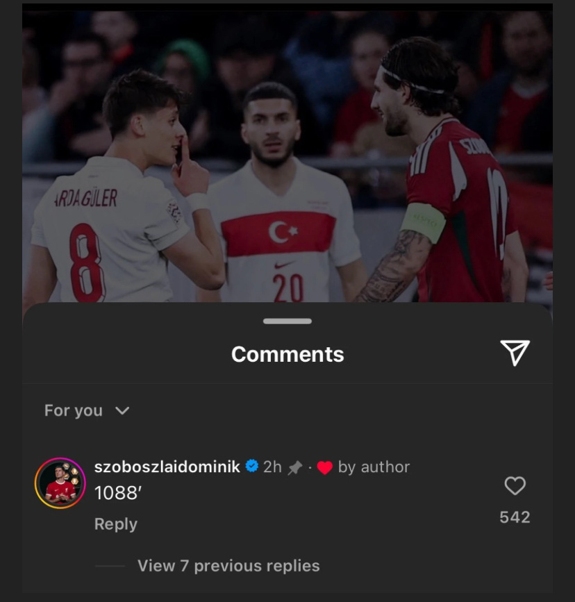 Конфликт между полузащитником мадридского «Реала» Ардой Гюлером и хавбеком «Ливерпуля» Домиником Собослаи начался в марте 2024 года во время товарищеского матча между сборными Турции и Венгрии. В той игре Собослаи, реализовав пенальти, обеспечил победу своей команде со счетом 1:0. Во время матча между ним и Гюлером произошла стычка, в ходе которой венгерский футболист задал турку вопрос: «Ты кто вообще такой?» Спустя год, в марте 2025 года, сборные вновь встретились в плей-офф Лиги наций. Турция одержала победу в двухматчевом противостоянии с общим счетом 6:1. Во втором матче, состоявшемся 23 марта, Гюлер забил гол и, празднуя, подошел к Собослаи, приложив палец к губам, призывая его замолчать. После игры их противостояние продолжилось в социальных сетях. Собослаи оставил комментарий под фотографией Гюлера с жестом молчания, написав «1088» — указав на количество минут, которые турецкий футболист провел за «Реал» в текущем сезоне. В ответ Гюлер написал: «Этот парень — просто посмеш